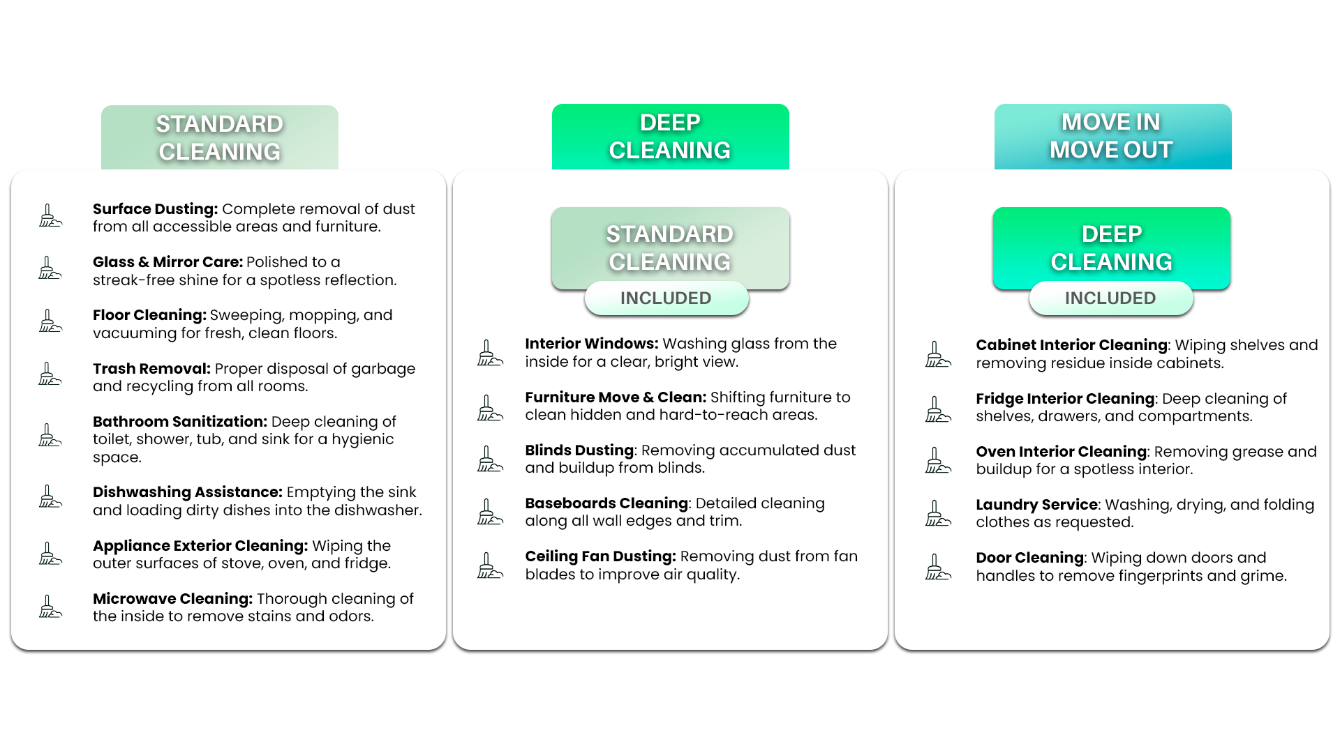 Thorough deep cleaning services designed to remove built-up dirt and grime, leaving every surface refreshed and spotless.